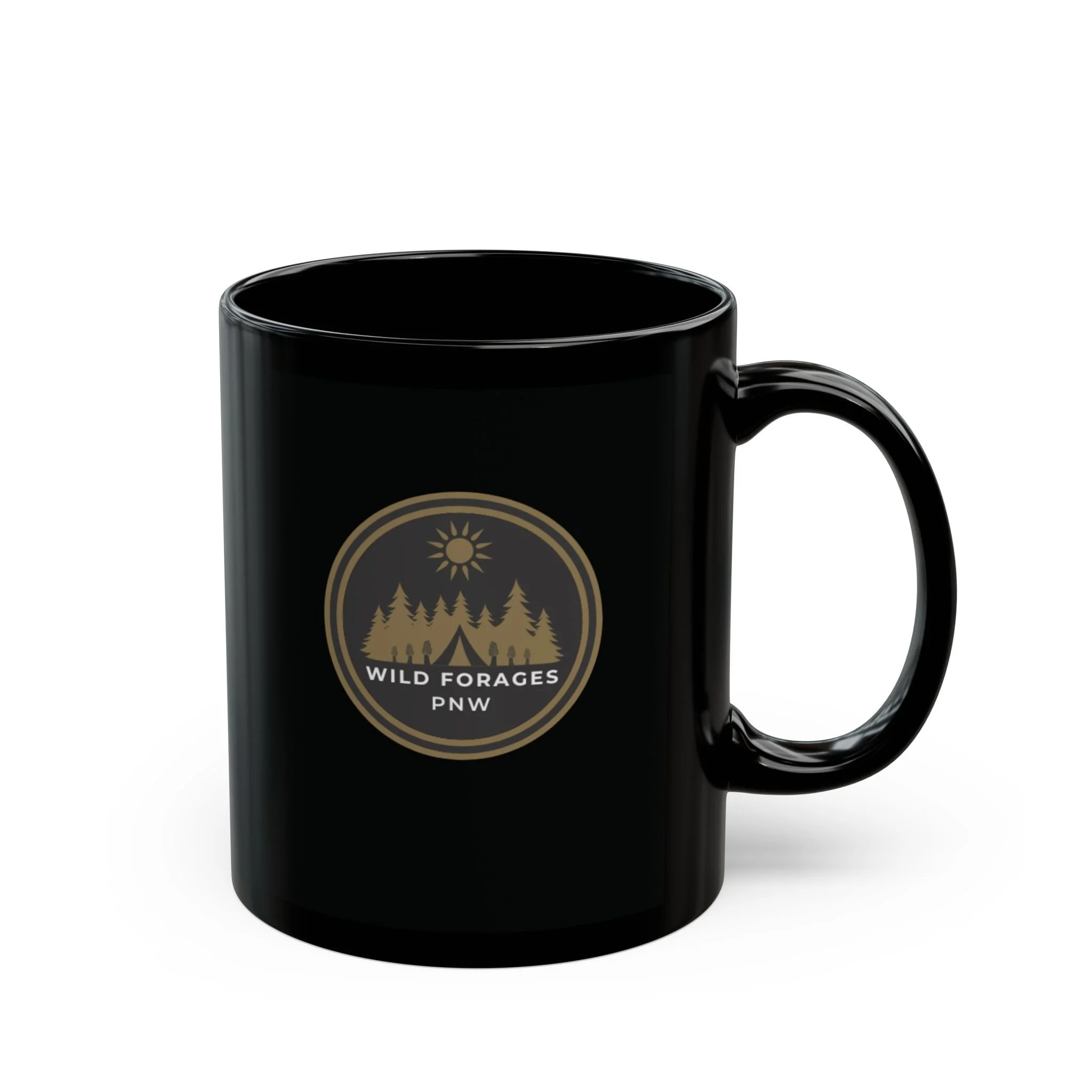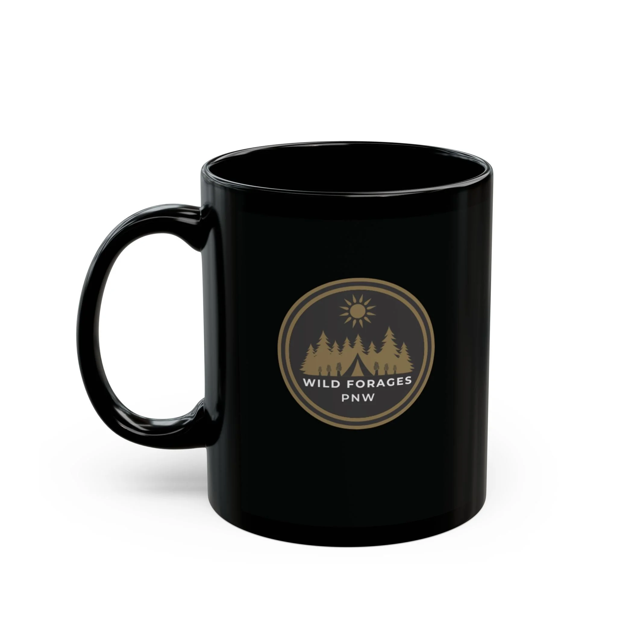 Black Ceramic Mug - 'Wild Forages PNW' Outdoor Logo Coffee Cup (11oz & 15oz)