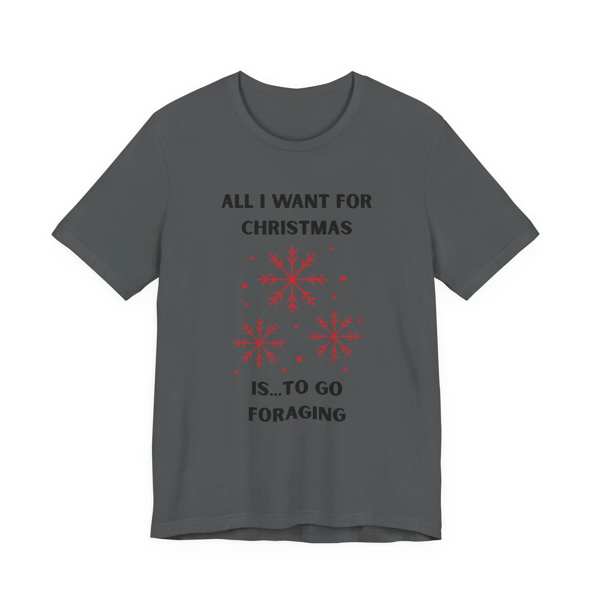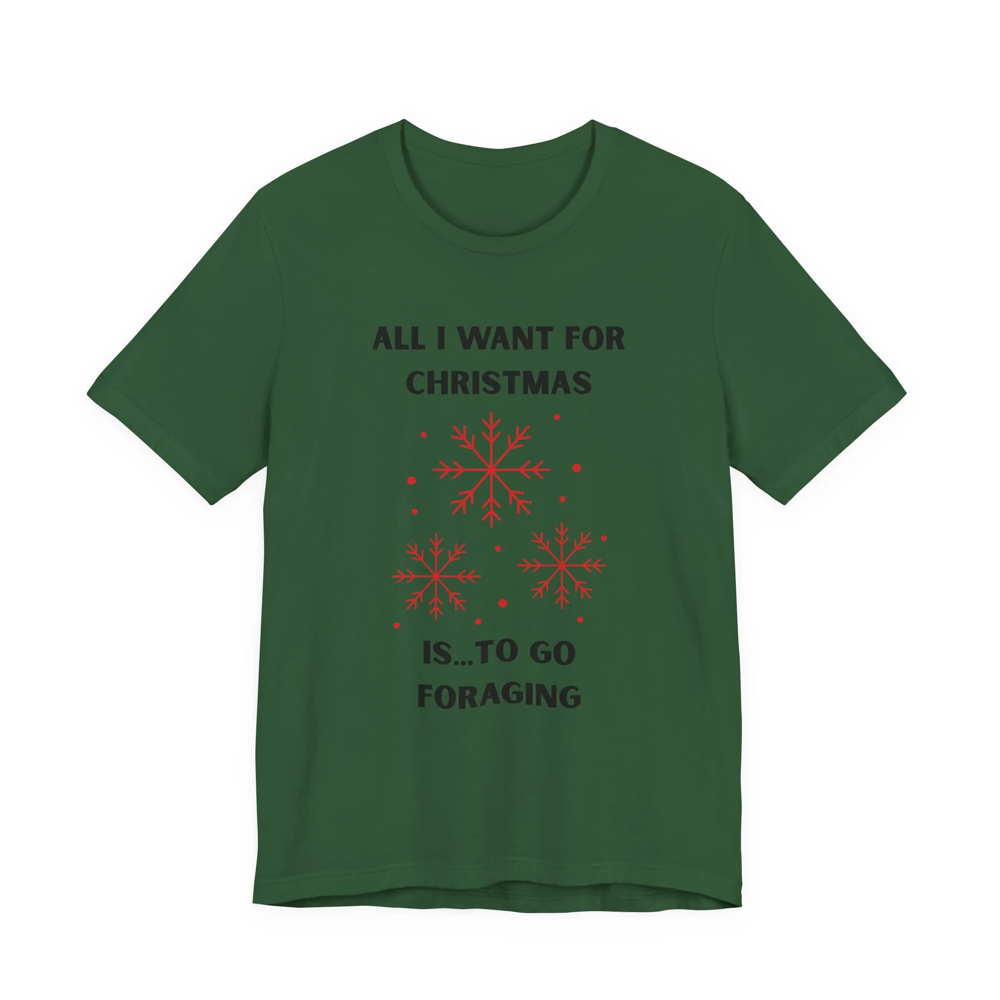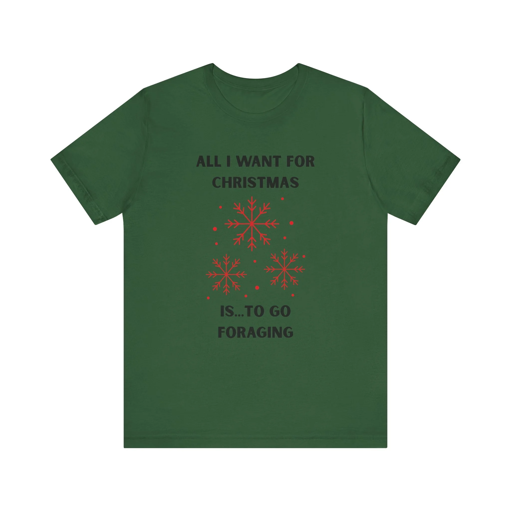 Foraging Christmas T‑Shirt — “All I Want for Christmas Is… To Go Foraging” Mushie Holiday Tee
