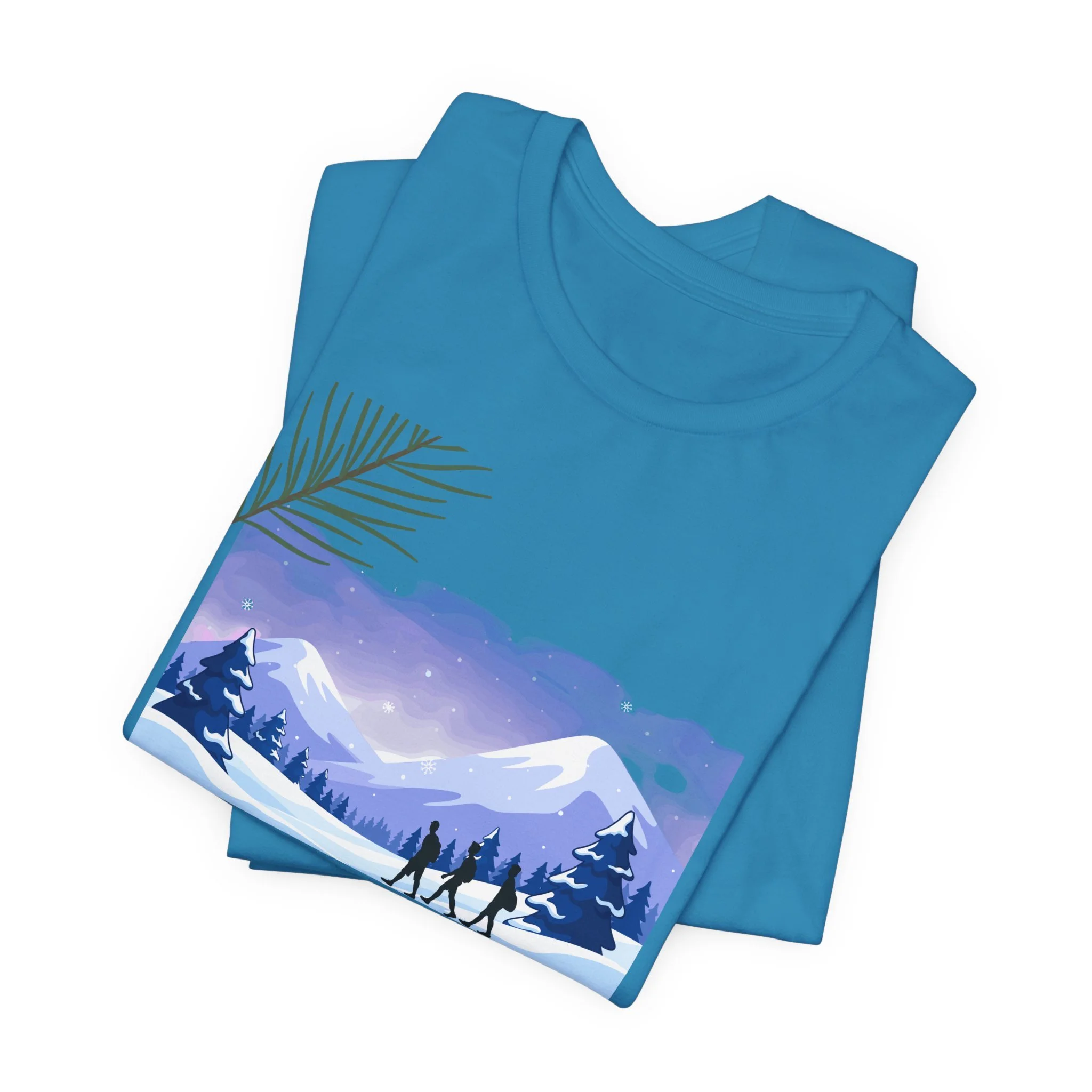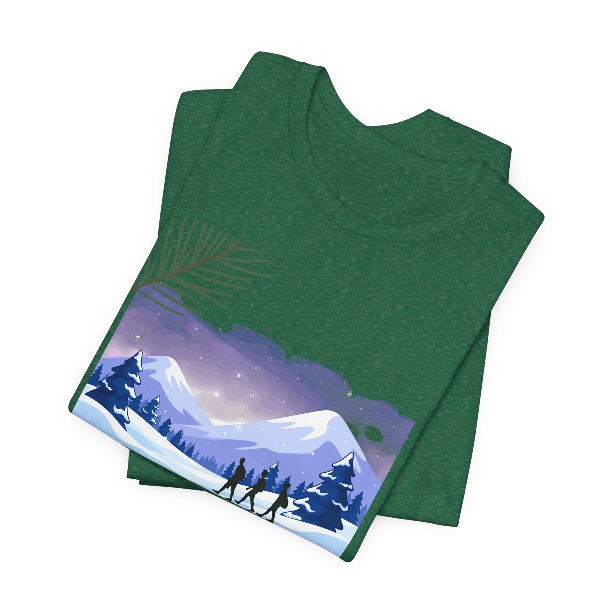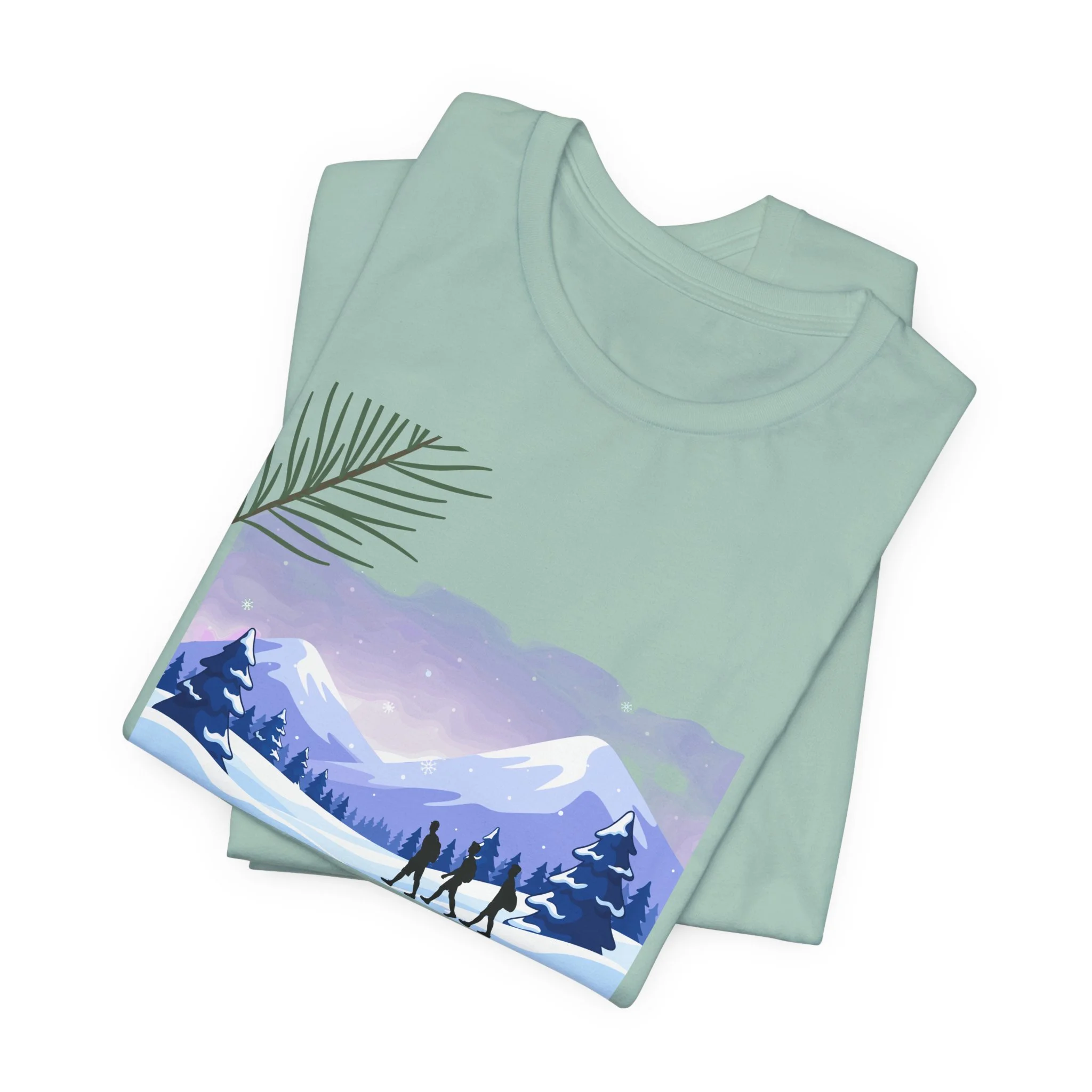 A lightweight, everyday tee that brings the quiet of the PNW into your wardrobe. Soft Airlume cotton feels breathable against the skin while the retail crew neck and side seams keep the silhouette tidy. The front artwork — a misty mountain scene in lavender and blue with small foragers walking the ridge — evokes early-morning hikes, berry hunts, and slow weekends in a cabin. It layers easily under a flannel or stands alone on warmer days, carrying a subtle, nature-first vibe without shouting. Ethically made and REACH certified, this tee balances comfort, conscience, and a gentle outdoor aesthetic.